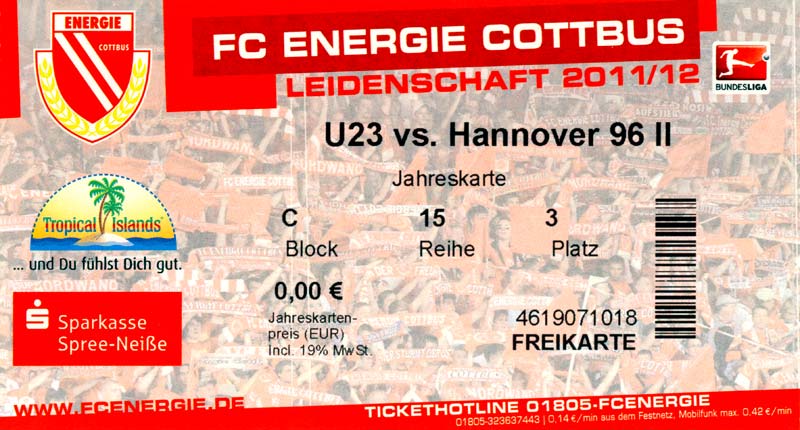 | 18. | 18.03.2012 | 1. FC Neubrandenburg 04 B-Junioren () | 0:3 | FC Energie Cottbus 2. B-Junioren |