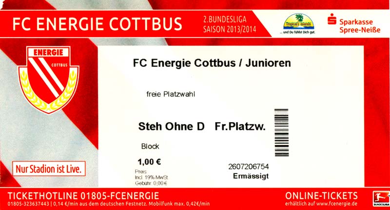 | 3. | 15.09.2013 | FC Carl Zeiss Jena C-Junioren () | 0:3 | FC Energie Cottbus C-Junioren |