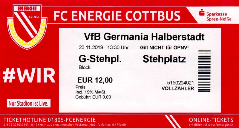 | 11. | 09.11.2019 | FV Preussen Eberswalde B-Junioren () | 0:6 | FC Energie Cottbus 2. B-Junioren |