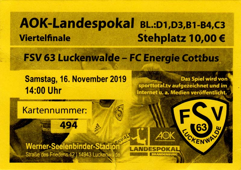 | 11. | 02.11.2019 | SV Babelsberg 03 C-Junioren () | 0:2 | FC Energie Cottbus C-Junioren |