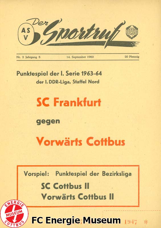 Nachholspiel. Ursprünglich sollte diese Begegnung bereits am 08.09.1963 ausgetragen werden. Aufgrund des Einsatzes der BSG Energie im FDGB-Pokal musste die Begegnung jedoch verlegt werden. |