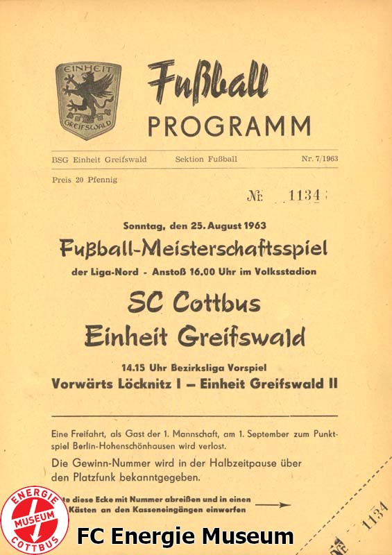 Mit diesem Spiel stand der SC Cottbus erstmals mit einem Punktspiel auf dem Tippzettel des Fußballtoto-Wettbewerbs. |