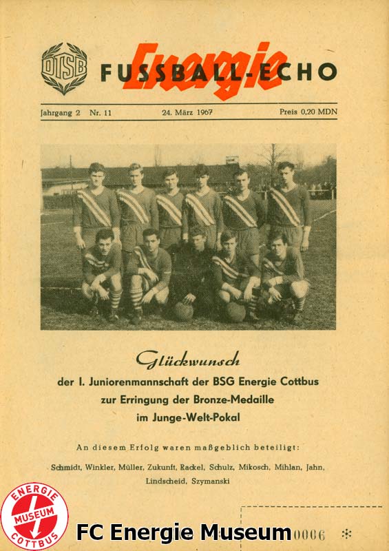 V. Jany - F. Withulz, H. Koinzer, K. Becker, E. Dietrich - J. Kurpat, Ma. Schuster - W. Grun, H. Stamer, P. Effenberger, E. Zeidler Trainer: Heinz Frenzel |