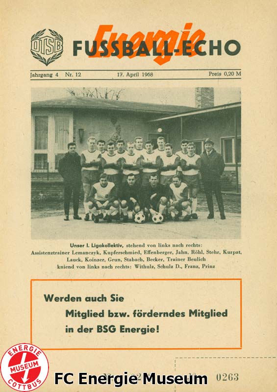 Nachholspiel. Ursprünglich sollte diese Begegnung bereits am 13.04.1968 ausgetragen werden. Aufgrund des fälligen Wiederholungsspiels im Achtelfinale des FDGB-Pokals musste die Ansetzung jedoch um einige Tage verlegt werden. |