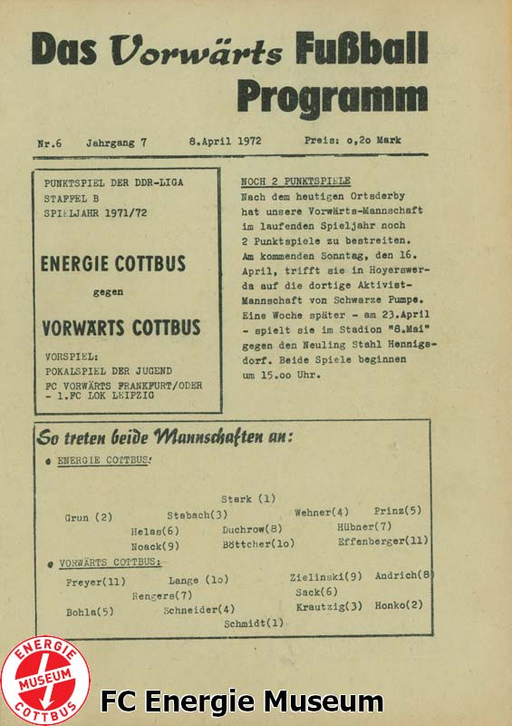 | Aufstellung BSG Energie Cottbus |