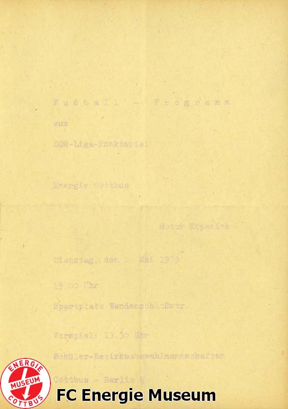 V. Ziegenhagen - K. Stabach - M. Duchrow, Wo. Lehmann, H. Prinz - S. Wünsch, K. Becker, K. Grebasch - W. Grun, H. Böttcher, P. Effenberger Auswechslungen: Trainer: Manfred Kupferschmied |