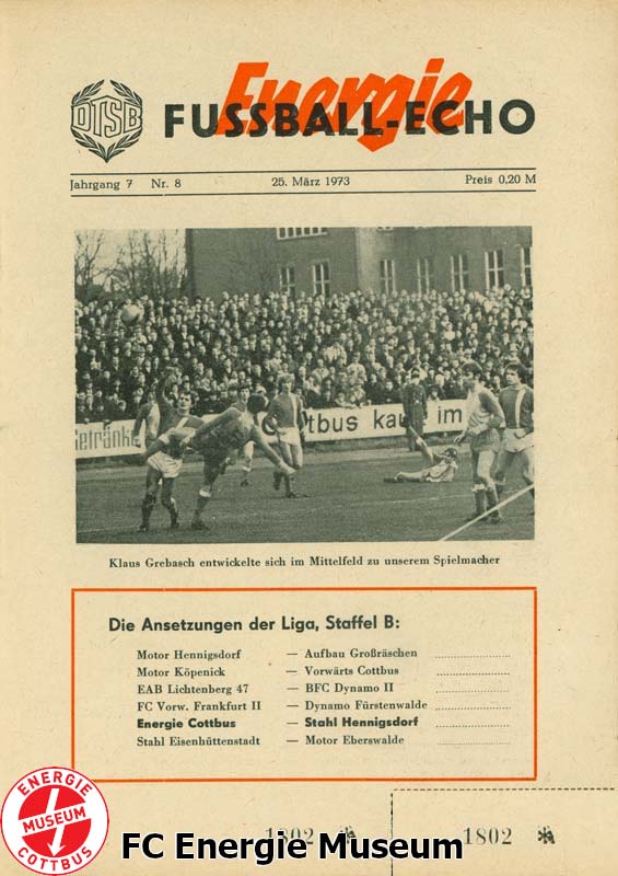 S. Franz - K. Stabach - W. Grun, W. Wehner, H. Prinz - S. Wünsch, K. Hübner, K. Grebasch - M. Noack, H. Böttcher, P. Effenberger Auswechslungen: Trainer: Manfred Kupferschmied |