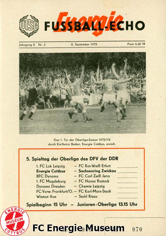 S. Franz - K. Stabach - W. Grun, W. Wehner, H. Prinz - S. Wünsch, H. Wank, K. Becker - M. Noack, K. Grebasch, U. Jank Auswechslungen: Trainer: Manfred Kupferschmied |