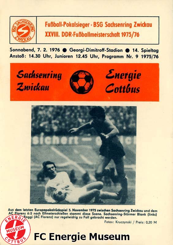 J. Croy - H. Schykowski - R. Stemmler, G. Lippmann, J. Schykowski, C. Schwemmer, H. Dietzsch, D. Leuschner, L. Blank, W. Bräutigam, M. Braun Auswechslungen: Trainer: Karl-Heinz Kluge |