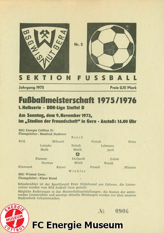 V. Ziegenhagen - G. Mikosch - Reiß, Wo. Lehmann , R. Lempke - V. Muth, H. Kotsch, W. Pietsch - U. Jank, B. Piesker, D. Wolf Auswechslungen: Trainer: Manfred Duchrow |