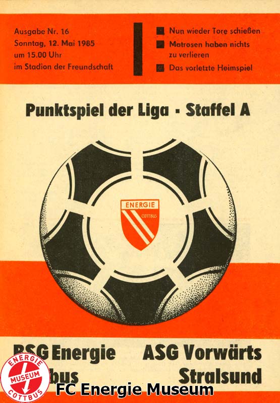 U. Groothius - G. Person - U. Ruppach, K. Duggert, A. Priebe - B. Manthe, R. Humboldt, T. Gritzan - F. Schedlinski, W. Schumann , R. Schneider Auswechslungen: Trainer: Günter Baltrusch |