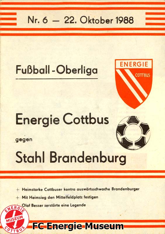 Die BSG Stahl Brandenburg beendete die Begegnung mit lediglich zehn Mann. S. Demuth schied in der 73. Minute verletzt aus. Das Wechselkontingent hatte Brandenburg zu diesem Zeitpunkt bereits erschöpft. |