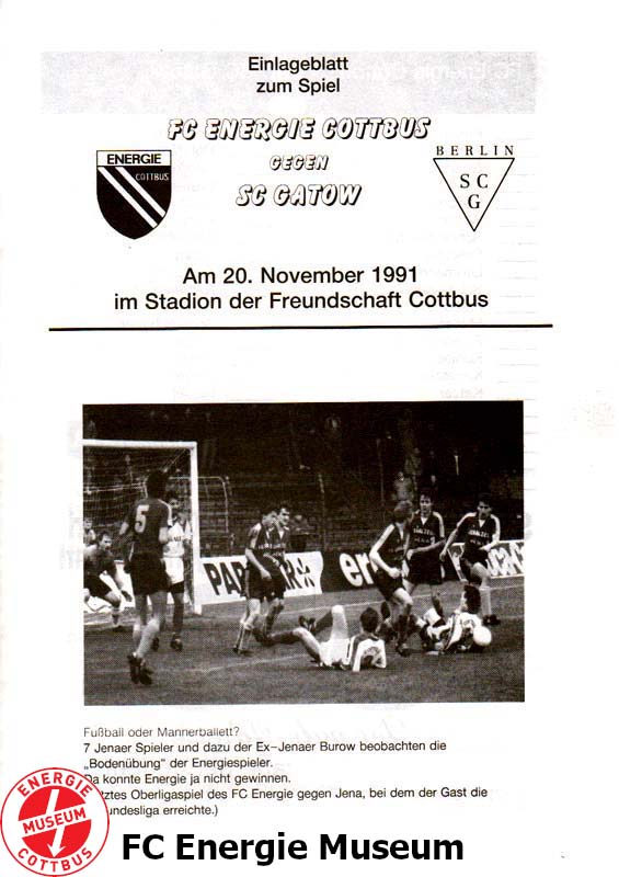 Nachholspiel. Ursprünglich sollte diese Begegnung bereits am 20.10.1991 ausgetragen werden. Aufgrund des Auswahlspiels zwischen den Fußballverbänden Brandenburg und Mittelrhein (4:2) in Cottbus an diesem Tag, wurden die Begegnungen der Mannschaften, die Spieler für die Auswahl abstellten, verschoben. |