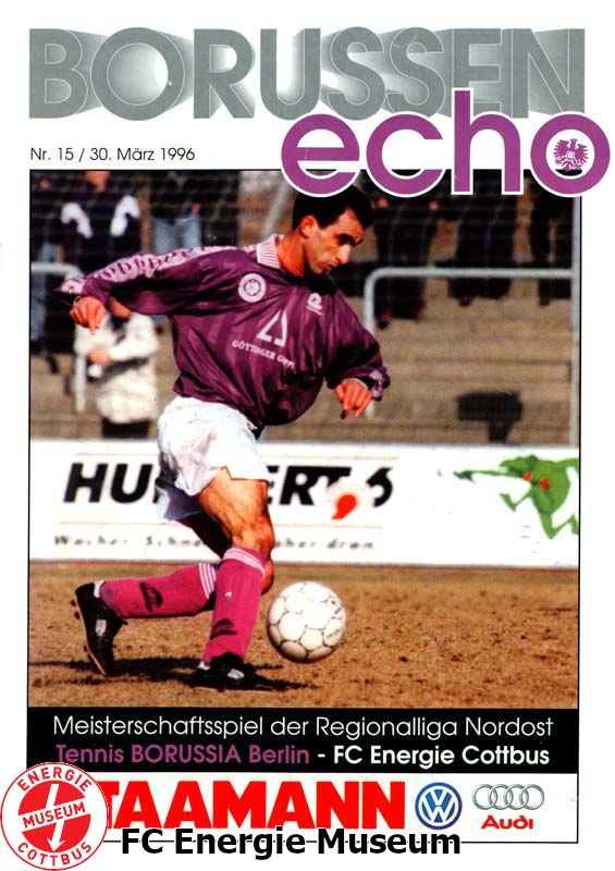 Nachholspiel. Ursprünglich sollte diese Begegnung bereits am 24.02.1996 ausgetragen werden. |