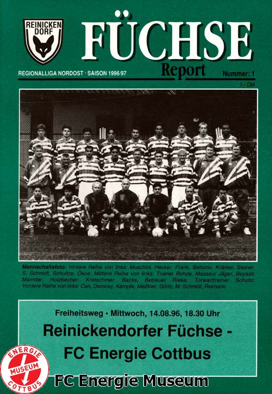 Nachholspiel. Ursprünglich sollte diese Begegnung bereits am 11.08.1996 ausgetragen werden. Aufgrund des DFB-Pokalspiels des FC Energie gegen den SV Stuttgarter Kickers musste die Ansetzung jedoch um einige Tage verlegt werden. |