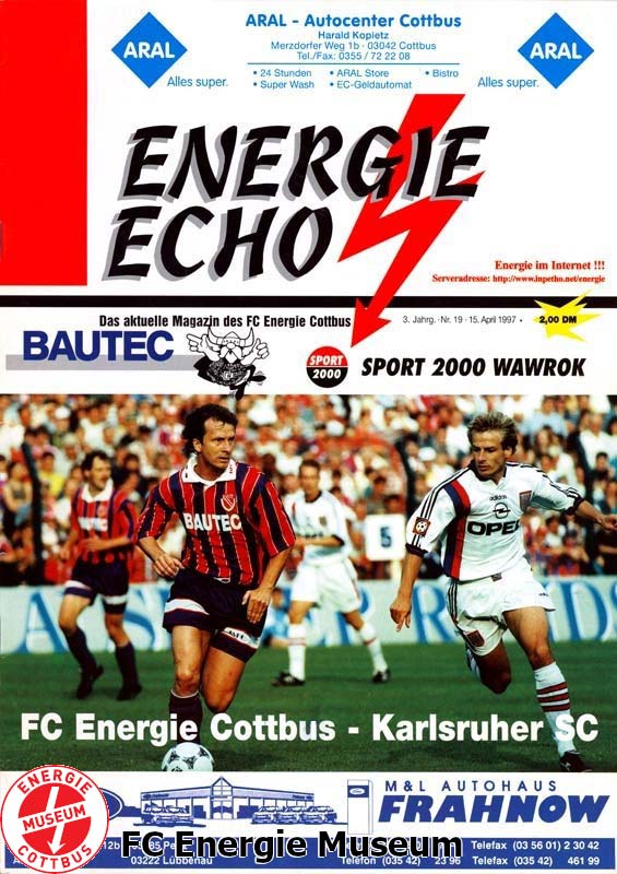 Schnee im April kommt schon mal vor. Was für den Meteorologen noch erklärbar ist, war an jenem denkwürdigen 15. April 1997 ein Faustpfand für den FCE. Im Verlauf des Tages verdichteten sich die Wolken über Cottbus und bei wenigen Grad Celsius fielen bereits am Nachmittag die ersten kleinen Flöckchen. Der Karlsruher SC war da bereits in Cottbus und KSC-Trainer Winnie Schäfer wusste schon nach der Platzbegehung, dass "es heute ungemütlich" werden könne. Natürlich waren die Karlsruher klarer Favorit. Das Team aus Baden war auf dem Weg Richtung UEFA-Cup, während Cottbus in der Regionalliga um den Aufstieg rang. Doch all das war beim Anstoß um 20:30 Uhr vollkommen nebensächlich. Im restlos ausverkauften Stadion der Freundschaft drängten sich 20.000 Zuschauer auf den Stehtraversen, um der nächsten möglichen Sensation beizuwohnen. Der Schneefall war pünktlich zum Anpfiff in dicke Flocken übergegangen, das Spielfeld war ein einziger weißer Teppich. Der KSC kam in Bestbesetzung nach Cottbus, hatte mit Thosten Fink, Michael Tarnat, Dirk Schuster oder Sean Dundee geballte Bundesliga-Prminenz dabei. Cottbus antwortete mit Thomas Hoßmang, Sven Benken, Jens Melzig und Mike Jesse, die der Offensive mit Kampf und Leidenschaft entgegentraten. Das Spiel war von Minute eins an hart umkämpft. Immer wieder rutschten Spieler auf dem leicht eisigen Untergrund aus - doch vor allem den Energiespielern schien das alles in die Karten zu spielen. Während die Karlsruher um ein gepflegtes Passpiel bemüht waren, grätschten und kämpften die Cottbuser um jeden Ball. Mit frenetischem Applaus wurde jeder gewonnene Zweikampf von den eingeschneiten Fans angefeuert. Als Dirk Schuster in der 33. Minute glatt Rot sah, kochte das Stadion geradezu. Und was nach der Pause geschah, ist Energie-Geschichte, ist Legende - und bis heute unvergessen. Nicht nur, dass Willi Kronhardt in der 65. Minute den Bann brach und das 1:0 für den Außenseiter erzielte. Es war auch der Jubel an sich, der bis heute in den Köpfen blieb und das Nicki mit der Grußbotschaft an die damalige Freundin "Jule" offenbarte. Auch die Gier mit der Energie nun auf den zweiten Treffer ging, der nur drei Minuten später durch Torjäger Detlef Irrgang fiel, war beeindruckend. Auf den Rängen gab es kein Halten mehr, Menschen lagen sich in den Armen, das Stadion stand komplett Kopf. Als Toralf Konetzke kurz vor Ende sogar noch auf 3:0 erhöhte, war die Sensation vollbracht. "Sie erleben die Demontage eines Bundesligisten", tönte die Überraschung auch an den heimischen Fernsehern über den Bildschirm. Als Schiedsrichter Alfons Berg nach 90 Minuten abpfiff, lagen die Spieler voller Freude, aber auch teils völlig erschöpft im Schnee und ließen sich feiern. Ein Tag für die Ewigkeit, ein Dienstag im April, der noch bis tief in die Nacht für unzählige Feierlichkeiten in der Stadt sorgte. Und überall war es vernehmbar, dieses wahr gewordene Mantra: "Berlin, Berlin, wir fahren nach Berlin".