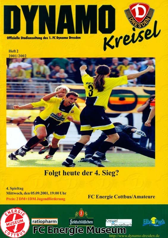 Nachholspiel. Ursprünglich sollte diese Begegnung bereits am 25.08.2001 ausgetragen werden. Aufgrund des DFB-Pokalspiels der Amateurmannschaft des FC Energie gegen den DSC Arminia Bielefeld musste dieses Spiel verlegt werden. |