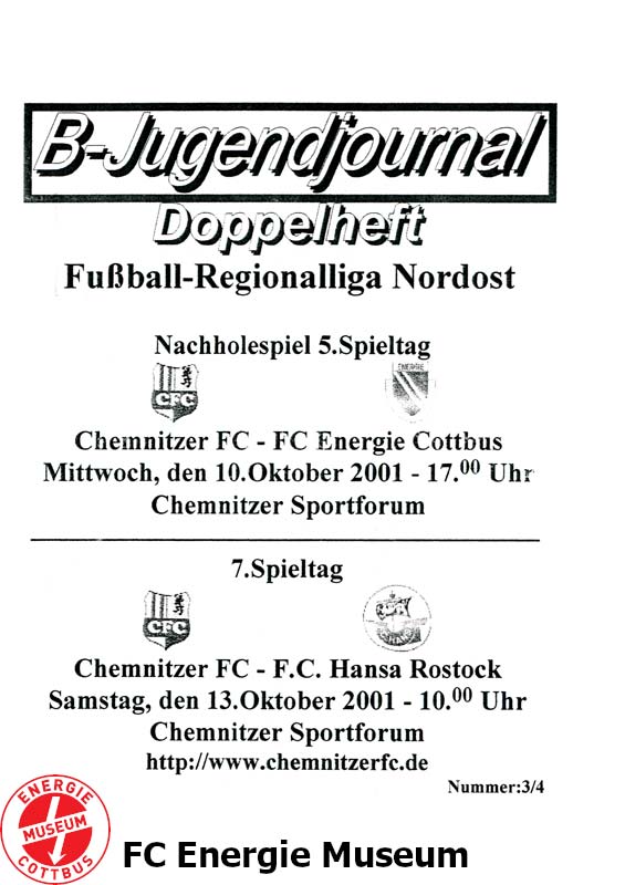 Nachholspiel. Ursprünglich sollte diese Begegnung bereits am 03.10.2001 ausgetragen werden. |