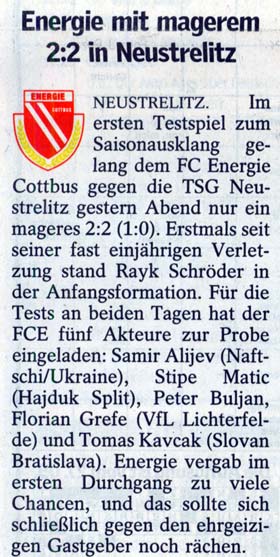 A. Lenz - R. Schröder, V. da Silva, F. Hujdurovic, R. Handreck - S. Aliyev, S. Matic, T. Mattuschka, T. Reichenberger - A. Juskowiak, P. Buljan Auswechslungen: Trainer: Eduard Geyer |