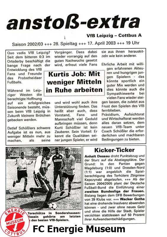 G. Grundmann - K. Rienaß, P. Freund, T. Jülich, R. Baum - O. Renn, J. Lenz, D. Hannemann , F. Räbsch - A. Blessin, N. Adler Auswechslungen: Trainer: Detlef Schößler |