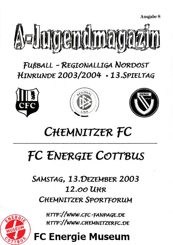 | Aufstellung Chemnitzer FC A-Junioren |
