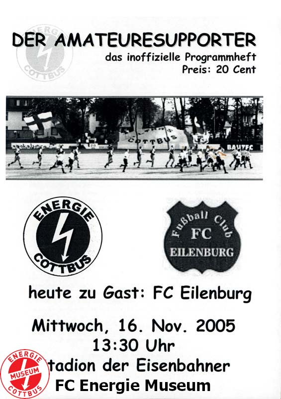 Nachholspiel. Ursprünglich sollte diese Begegnung bereits am 10.09.2005 ausgetragen werden. Aufgrund des Einsatzes mehrerer Spieler des FC Energie für die Brandenburgische Landesauswahl wurde die Partie verlegt. |