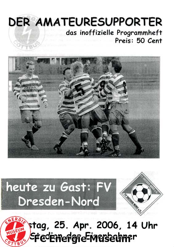 Das Spiel wurde am 08.04.2006 durch das Sportgericht des NOFV mit 0:2 statt 1:2 neu gewertet, da der FC Energie den Spieler M. Peßolat einsetzte, obwohl dieser wegen seiner fünften Gelben Karte gesperrt war. |