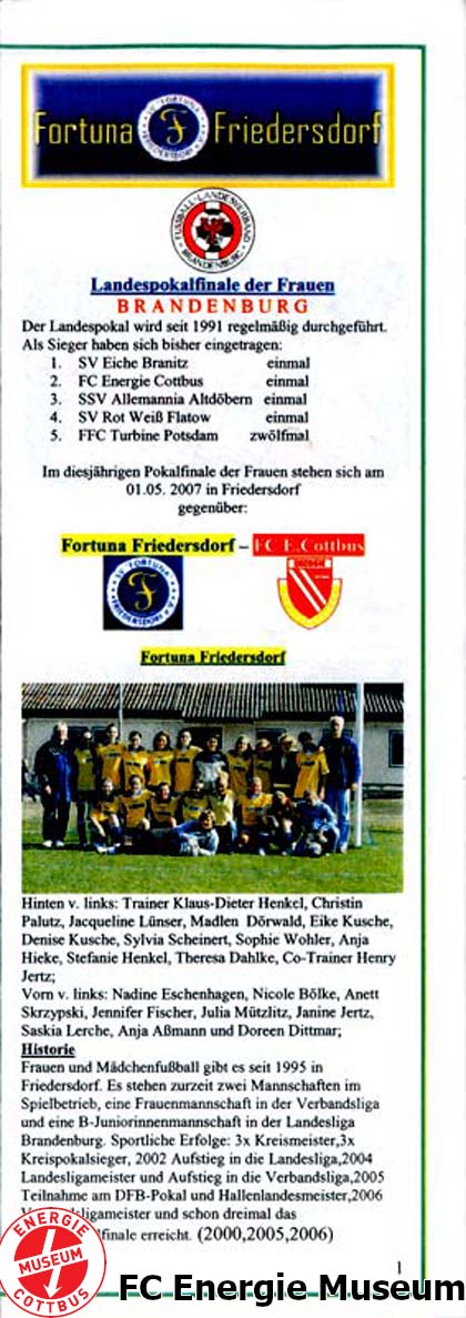 | Aufstellung FC Energie Cottbus Frauen |