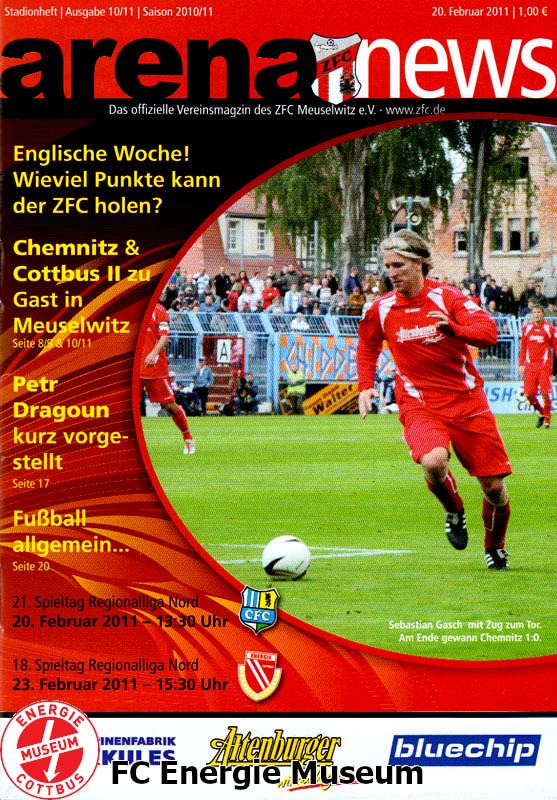 Nachholspiel. Ursprünglich sollte diese Begegnung bereits am 11.12.2010 ausgetragen werden. Wegen einer erneuten Absage am 23.02.2011 musste die Partie ein weiteres Mal verschoben werden. Grund der Absagen war jeweils die Unbespielbarkeit des Platzes nach starken Schneefällen. |