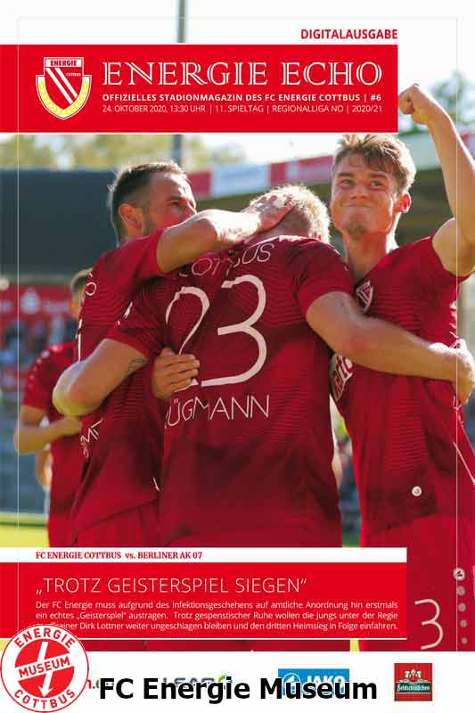 Aufgrund der aktuellen Vorgaben der Stadt Cottbus im Rahmen der Covid-19-Pandemie wurde diese Begegnung unter Ausschluss der Öffentlichkeit ausgetragen. |