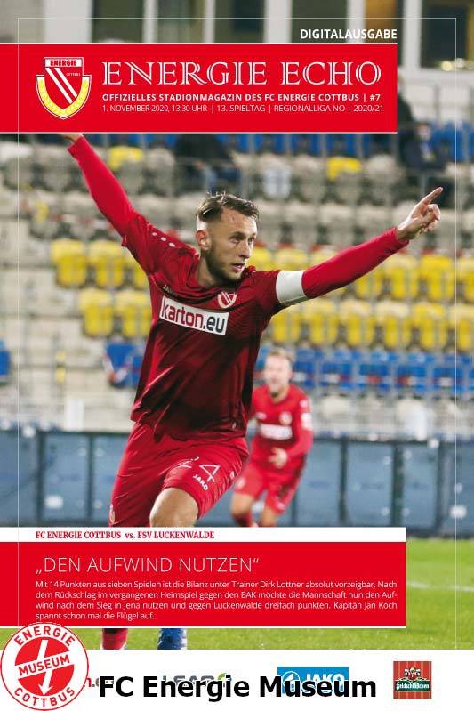 Aufgrund der aktuell geltenden Sicherheits- und Hygienevorschriften der Stadt Cottbus zur anhaltenden Covid-19-Pandemie waren zu dieser Begegnung lediglich 100 Zuschauer zugelassen. Dazu hat der FC Energie aus allen Dauerkarteninhaber*innen per Zufallsgenerator die einhundert zugangsberechtigten Energiefans ermittelt. |