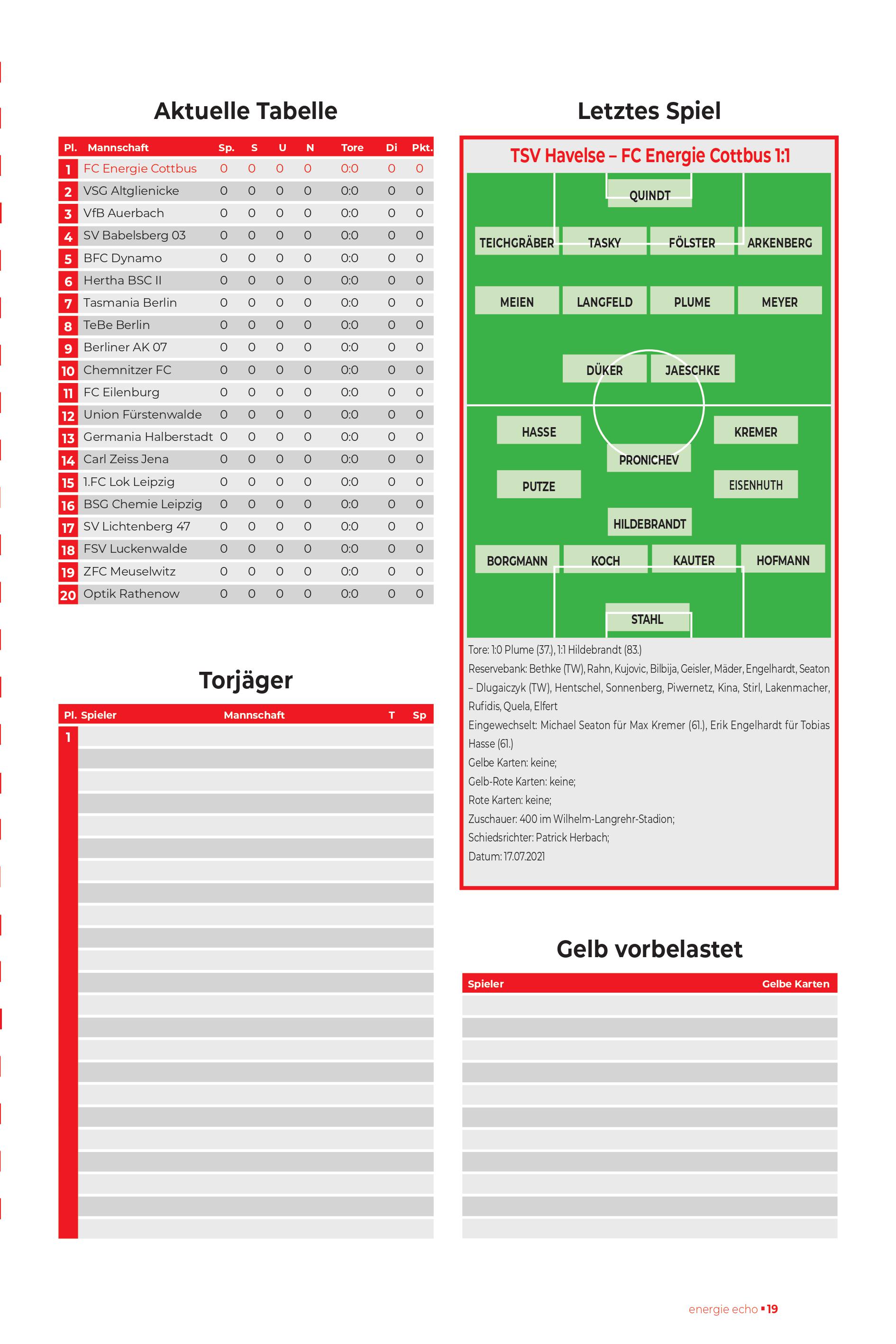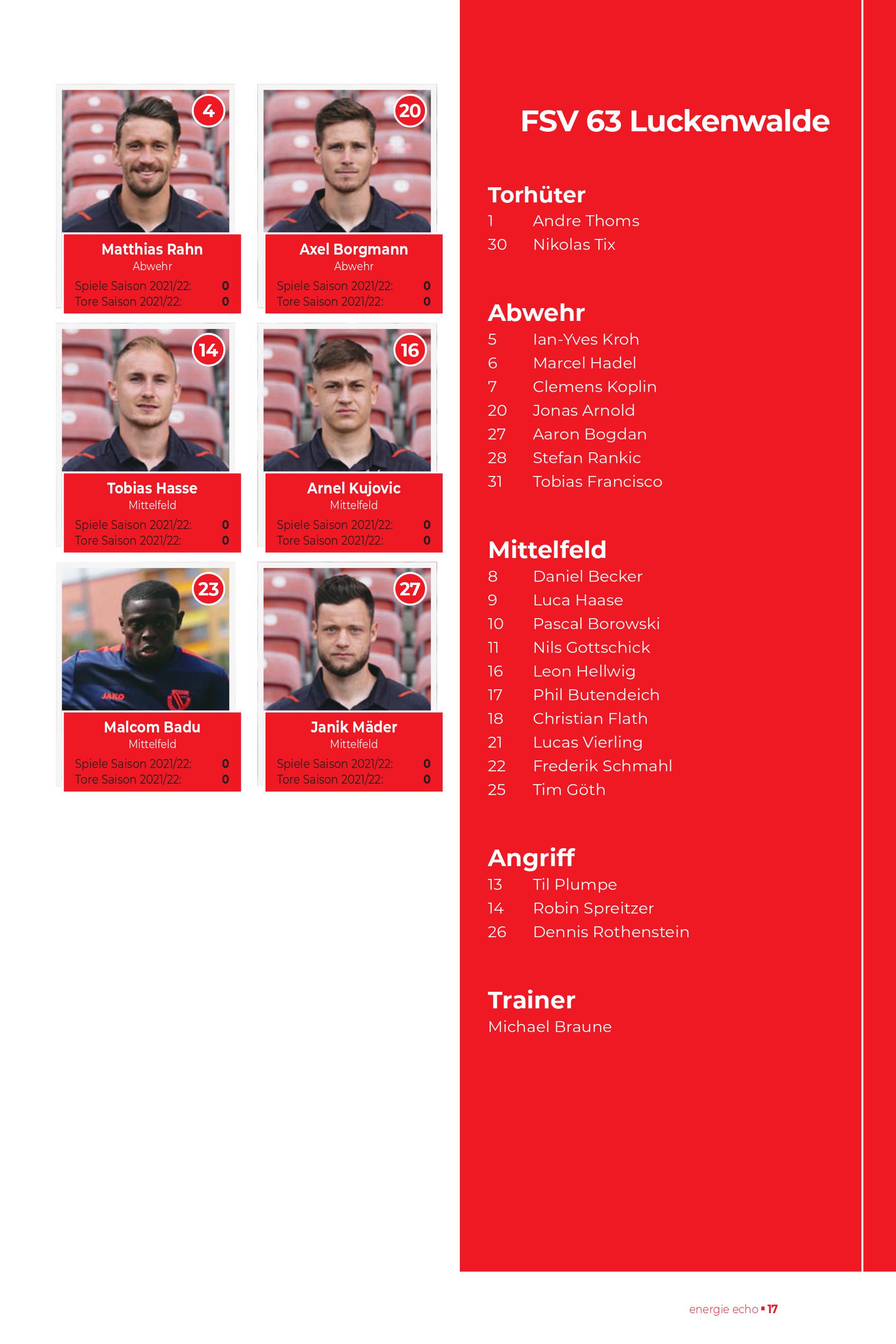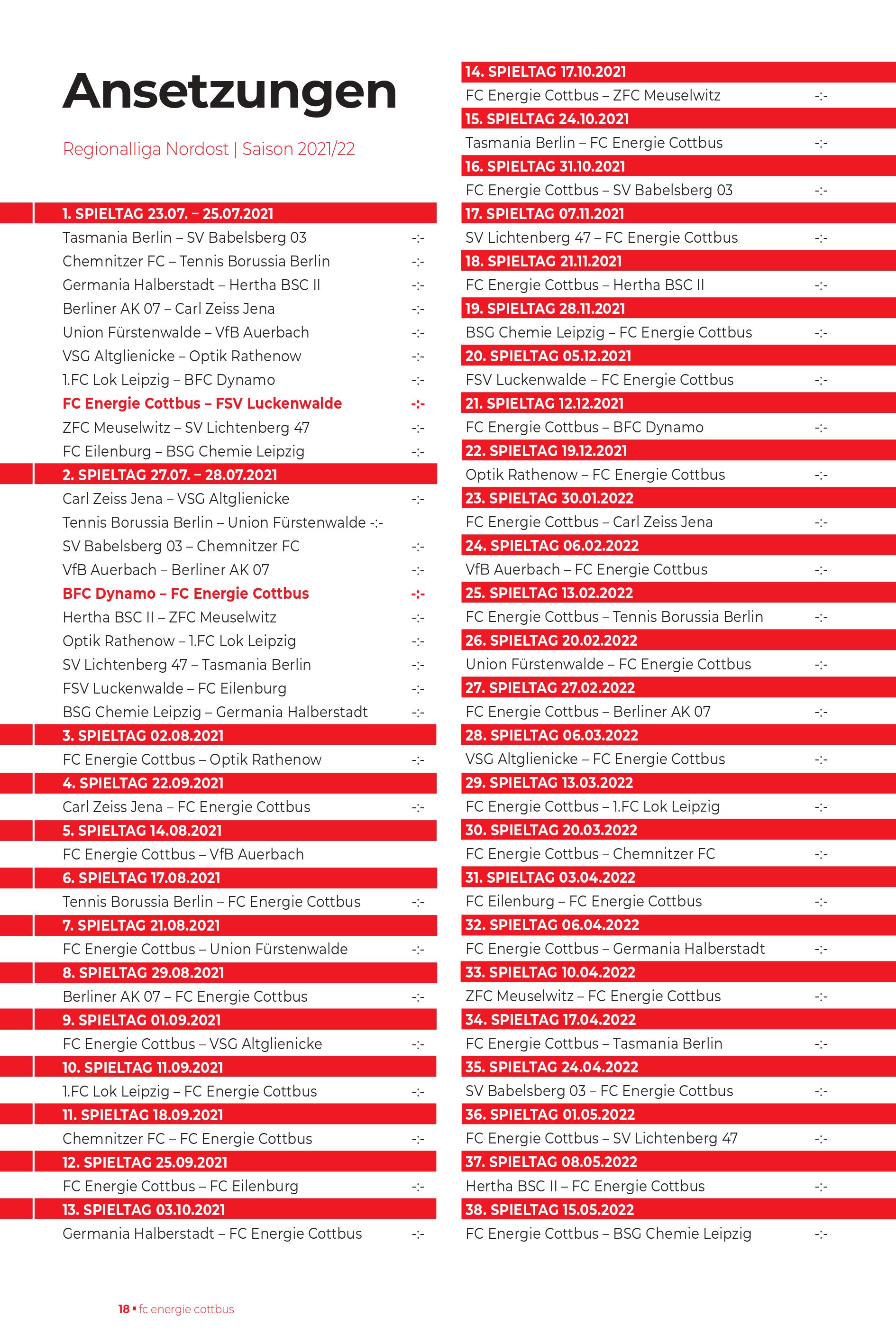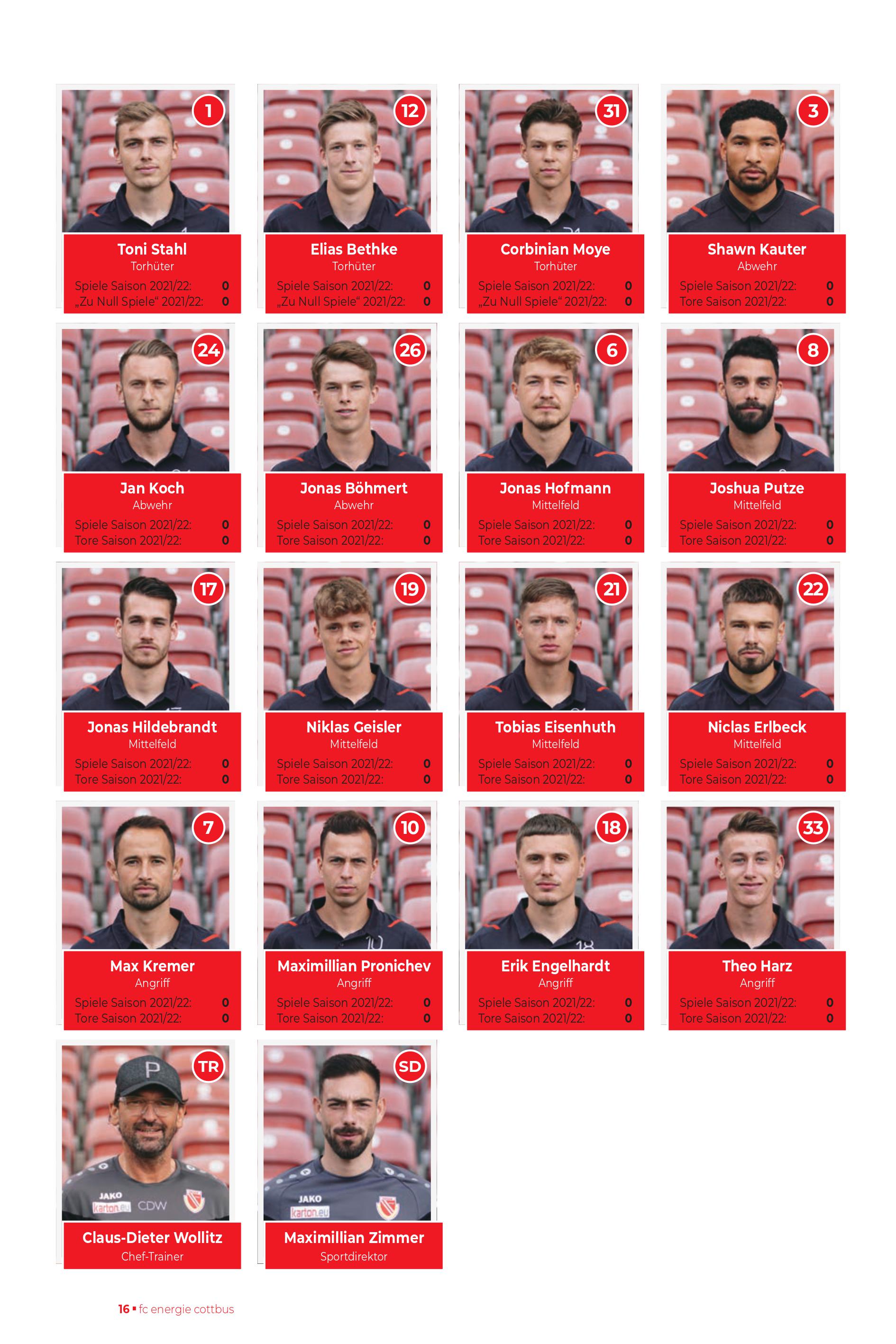 | Aufstellung FC Energie Cottbus |