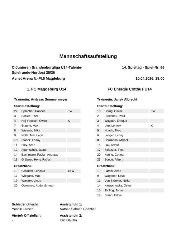 | Aufstellung 1. FC Magdeburg 2. C-Junioren |