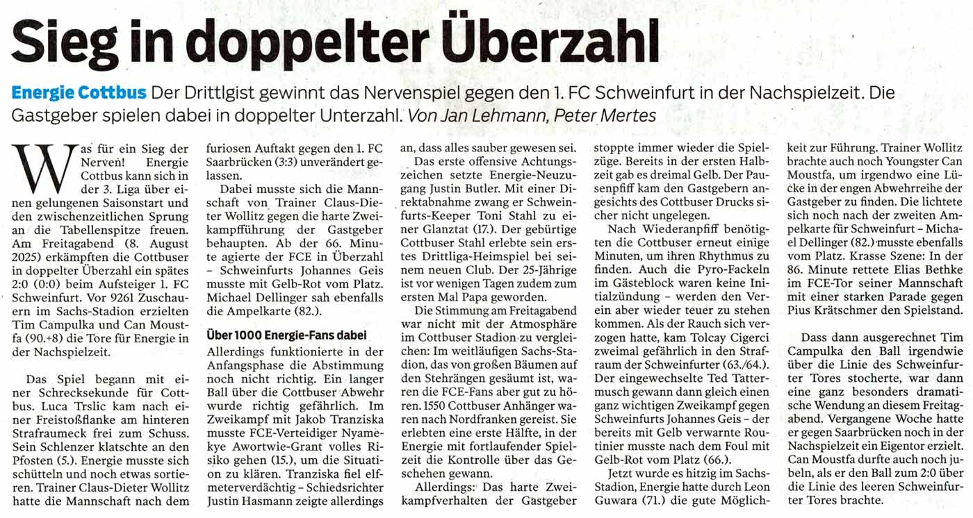 T. Stahl - L. Zeller, T. Meißner, L. Trslic , P. Krätschmer - J. Geis (66.), D. Angleberger - S. Müller, M. Wintzheimer, J. Endres - J. Tranziska Auswechslungen: Trainer: Victor Kleinhenz (G) |
