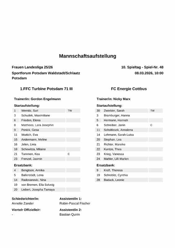 | Aufstellung 1. FFC Turbine Potsdam 71 3. Frauen |