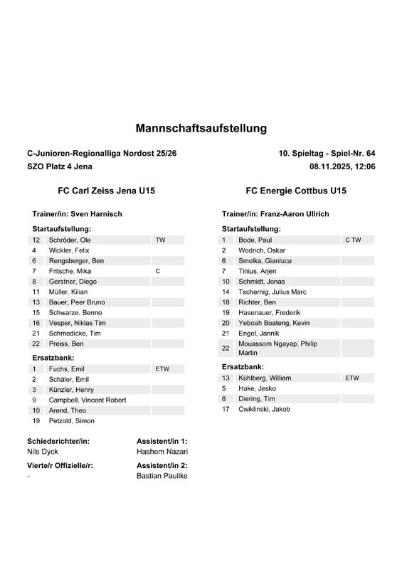 | Aufstellung FC Carl Zeiss Jena C-Junioren |