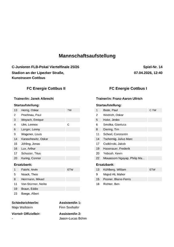 | Aufstellung FC Energie Cottbus C-Junioren |