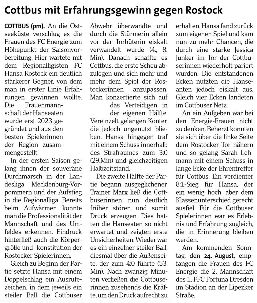 Aufstellung FC Energie Cottbus Frauen |