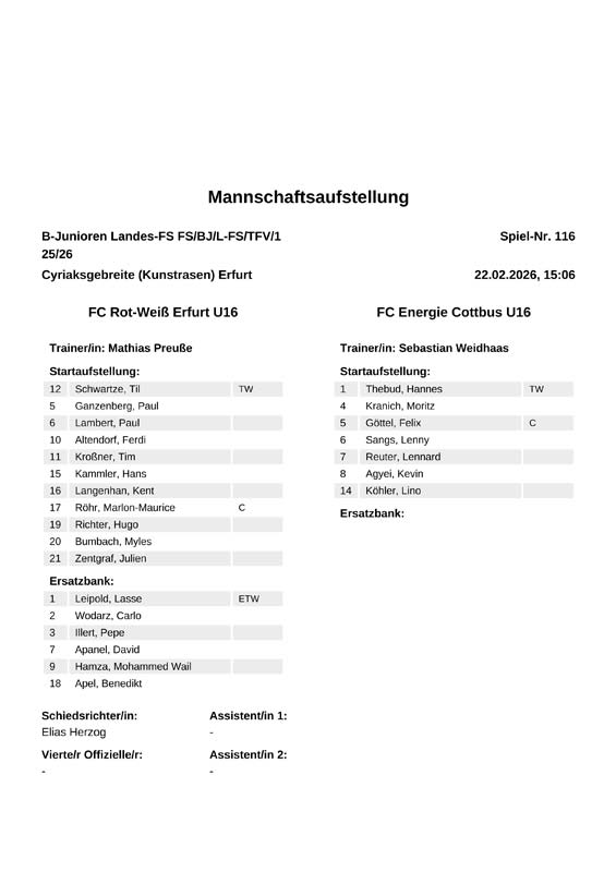 | Aufstellung FC Rot-Weiß Erfurt 2. B-Junioren |