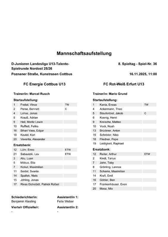 | Aufstellung FC Energie Cottbus D-Junioren |