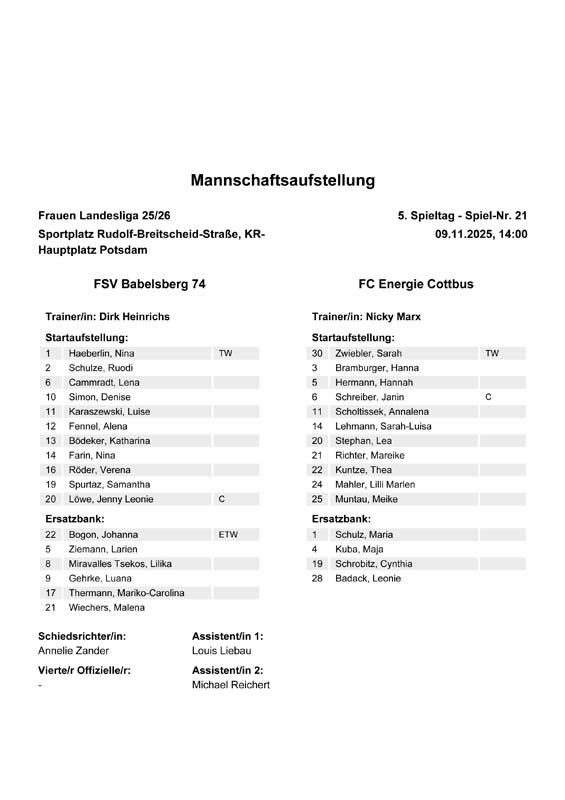 | Aufstellung FSV Babelsberg 74 Frauen |