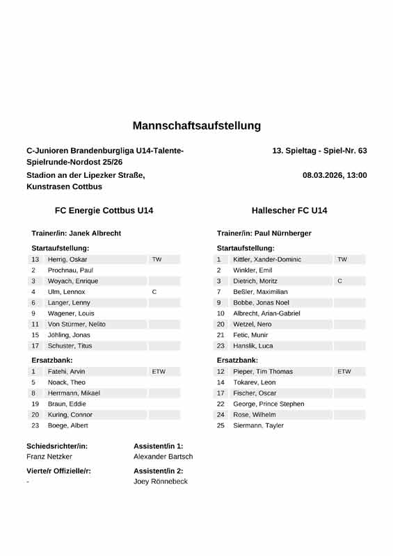 | Aufstellung Hallescher FC 2. C-Junioren |