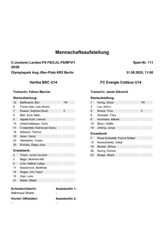 O. Herrig - A. Lux, T. Noack, T. Schuster, M. Herrmann, O. Karaschewitz, E. Braun, W. Becker, J. Jöhling, C. Kuring, A. Boege Auswechslungen: Trainer: Janek Albrecht |