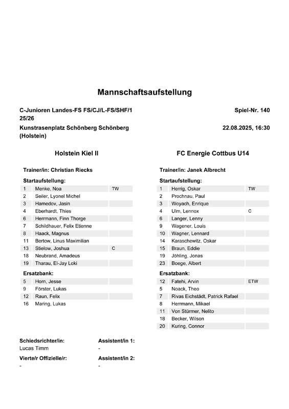 Kieler S.V. Holstein 1900 2. C-Junioren | (1:1) | FC Energie Cottbus 2. C-Junioren |