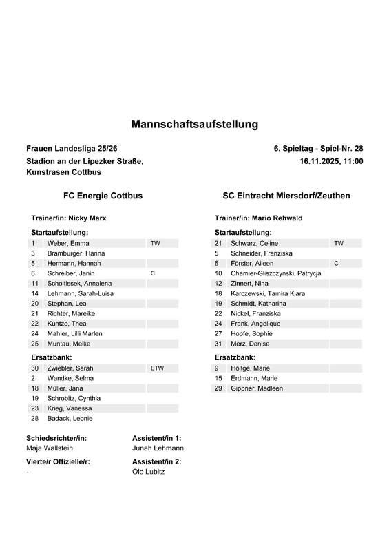 | Aufstellung SC Eintracht Miersdorf/Zeuthen 1912 Frauen |