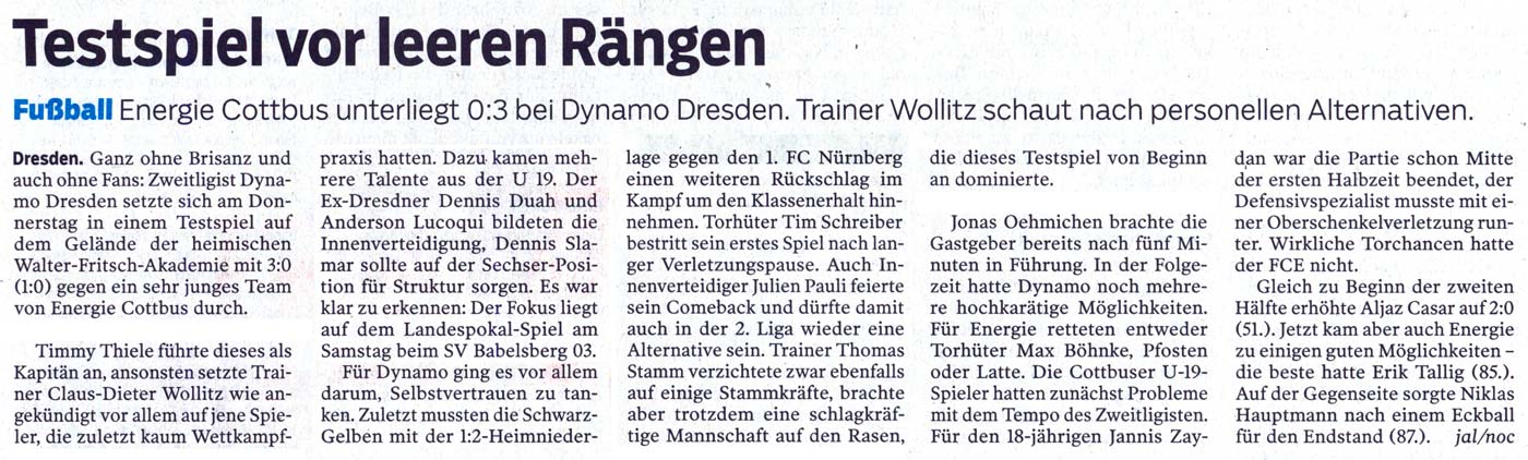 M. Böhnke - S. Straudi, D. Duah, A. Lucoqui, J. Zaydan - D. Slamar - F. Heidrich, M. Schößler - T. Ogbidi, T. Thiele, J. Butler Auswechslungen: Trainer: Claus-Dieter Wollitz |