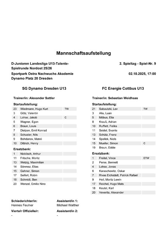 SG Dynamo Dresden D-Junioren | (2:0) | FC Energie Cottbus D-Junioren |