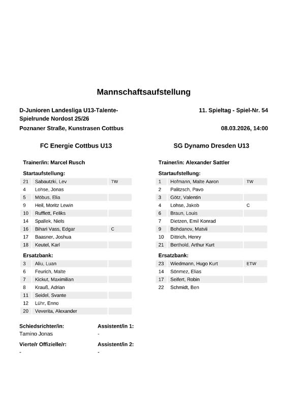 | Aufstellung FC Energie Cottbus D-Junioren |