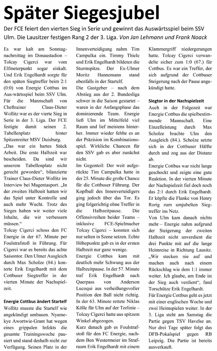 M. Funk - H. Rorig, K. Manu, T. Campulka, A. Lucoqui - D. Pelivan - M. Hannemann , T. Cigerci , A. Borgmann - E. Engelhardt, T. Thiele Auswechslungen: Trainer: Claus-Dieter Wollitz |