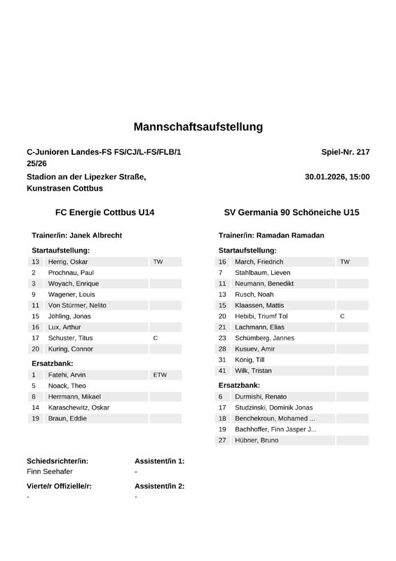 | Aufstellung SV Germania 90 Schöneiche C-Junioren |